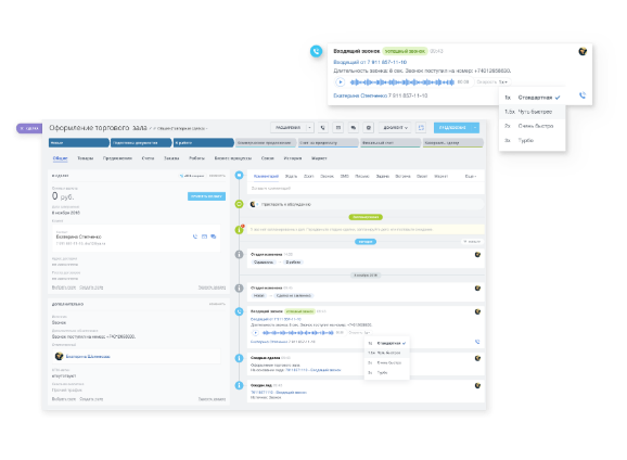 CRM автоматически распределит входящие звонки по продавцам, запишет разговоры, а также сформирует отчеты для руководителя.